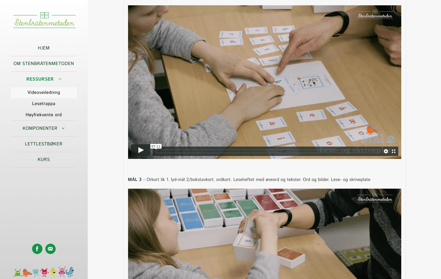Stenbråtenmetodens webside viser god oversikt over metoden, samt ressurser med bl.a video og øvelser innen høyfrekvente ord.