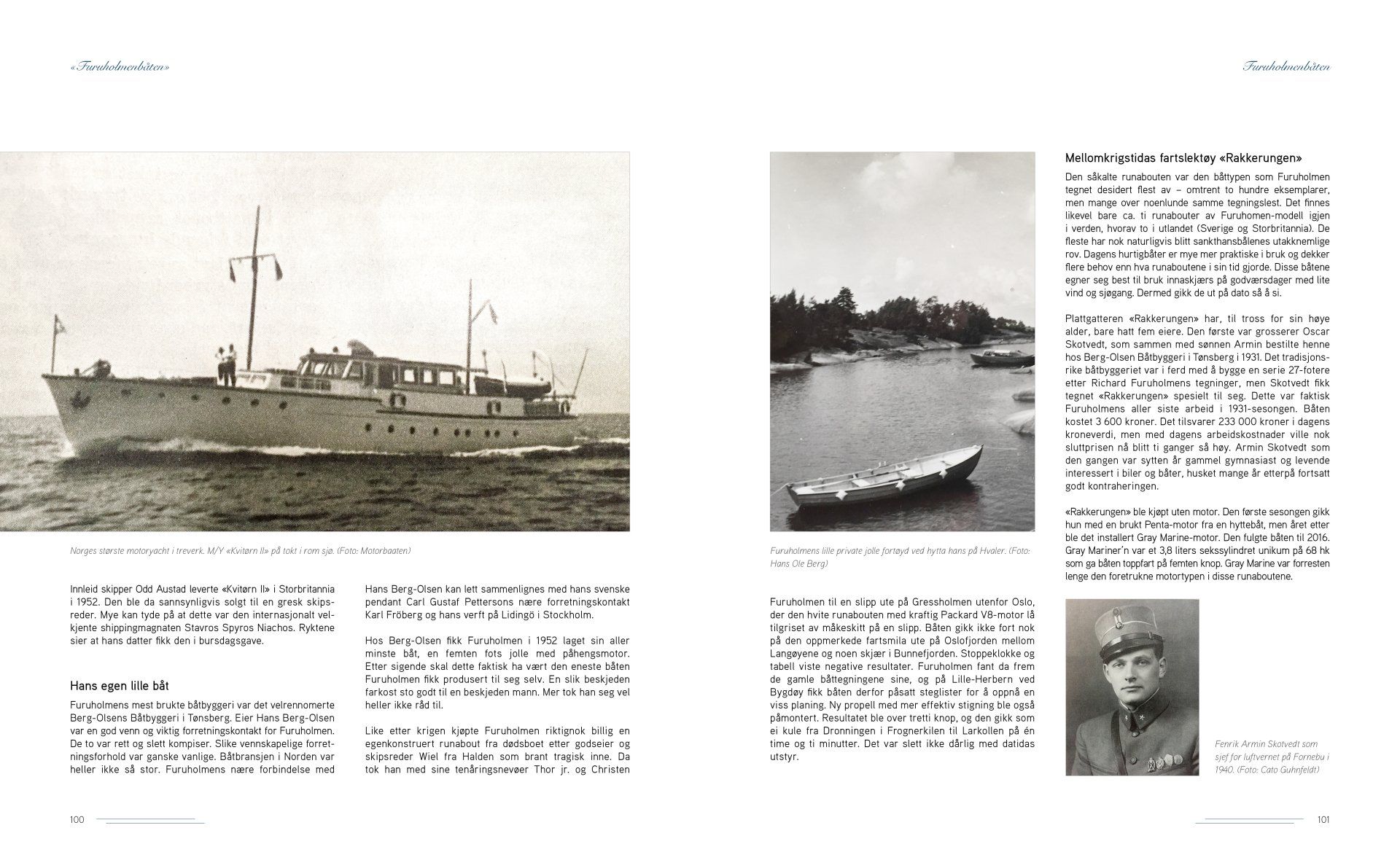 Furuholmenbåtene representerer noe helt unikt i norsk trebåthistorie. De er stolte eksempler på elegante fritidsbåter i tida like før plastbåtene overtok båtlivet i Norge. Furuholmenbåtene forener form-fullendt estetikk med nødvendig sjødyktighet i røffe norske farvann.